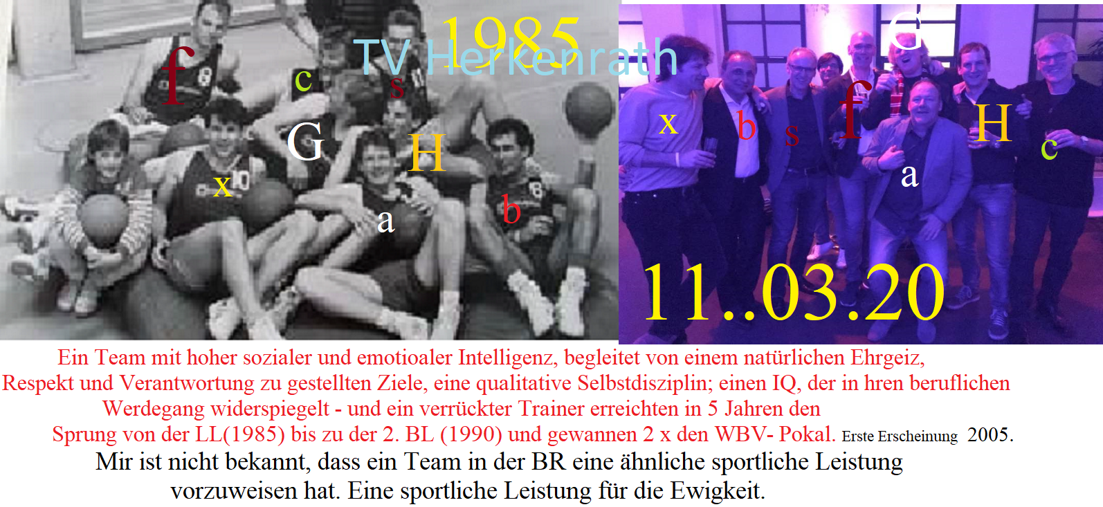 Das legendäre Basketball-Team von TV HERKENRATH, das in 5 Jahren von der LL bis zu einem 2. BL Aufstieg, mit einem ETA , jährlich von 3.000 DM, und mit 8 Spielern schaffte.